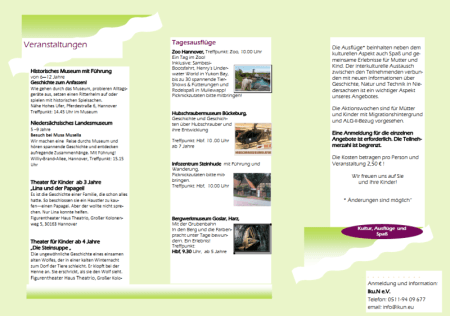 Ein wichtiges Ziel, kleine Tagesausflüge mit Kindern zu unternehmen, um Kultur, Natur und Geschichte kennenzulernen wurde umgesetzt. Die Fahrt mit dem Niedersachsenticket ist erschwinglich und einige Angebote und Sehenswürdigkeiten kosten wenig.